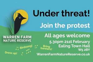Come join our friendly demonstration against Ealing Council’s plan to develop half of rewilded Warren Farm Nature Reserve.