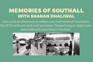 The workshop will feature a 'show and tell' session alongside a creative crafts activity, where you'll design a collage representing what Southall means to you. This will be a space to share and reflect on your memories of living in Southall.