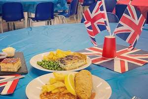 Featherstone High School marked the Coronation of King Charles III on Saturday at FHS. On Friday, the school hall was filled with bunting and flags and the canteen served a British menu of coronation quiche, fish & chips, Victoria sponge and scones with cream and jam.